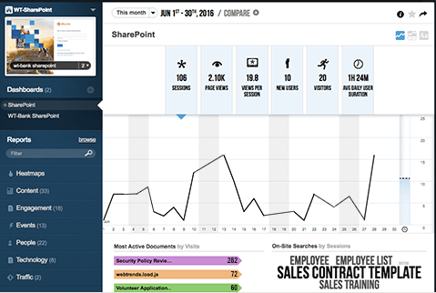 Webtrends Analytics for SharePoint was designed specifically to understand the details of SharePoint and is used by leading enterprises worldwide across hundreds of SharePoint Intranet sites to measure user behaviour and ROI.
