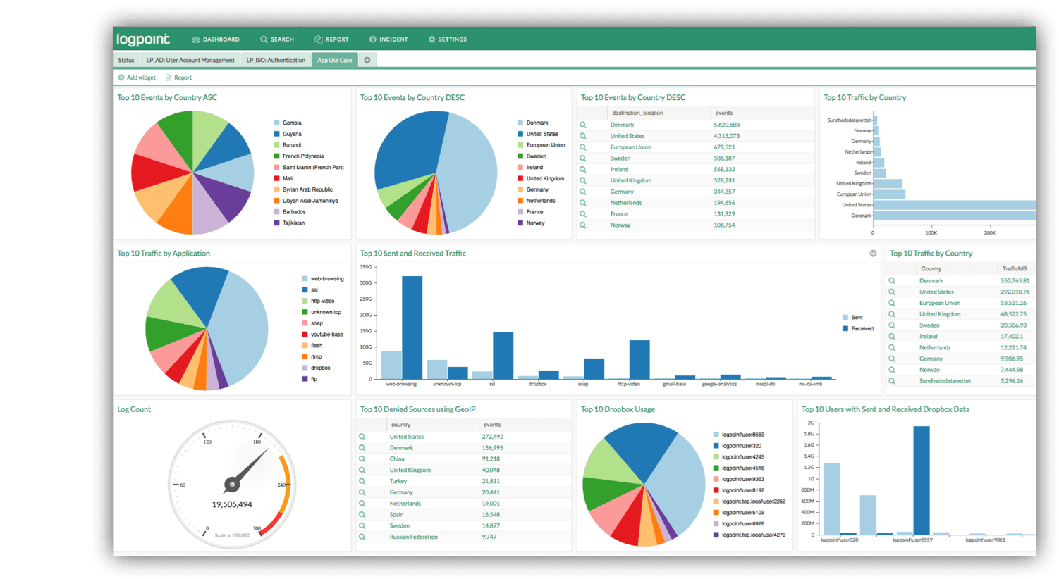 The Logpoint SIEM solution extracts events and incidents from the billions of logs existing in any IT infrastructure of any size.